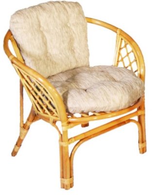 Удобное кресло из натурального ротанга с мягкой подушкой.