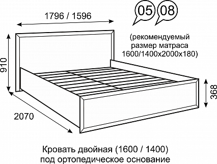 Размер спального места 120*200 / 140*200 / 160*200