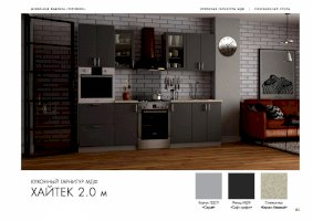 Специально для поклонников ультрасовременных интерьеров создан кухонный гарнитур «Хайтек». Мебель наделена всеми характеристиками этого стиля: стремительными линиями, монохромными цветами, глянцевыми поверхностями, минималисткой фурнитурой. Декоративные элементы не используются. Благодаря этим особенностям дизайна комплект не загромождает пространство.