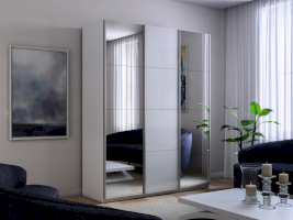 Шкаф-купе 3-х дверный Прайм Зеркало/Белое стекло/Зеркало 1800х2300х570 мм