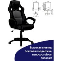 В обивке кресла использована экокожа высокого качества с перфорацией в центральной части. Материал хорошо пропускает воздух, устойчив к износу, не выцветает и легко чистится. Плотная набивка, выраженная боковая поддержка и продуманная эргономика позволят находиться в кресле долгие часы с комфортом.