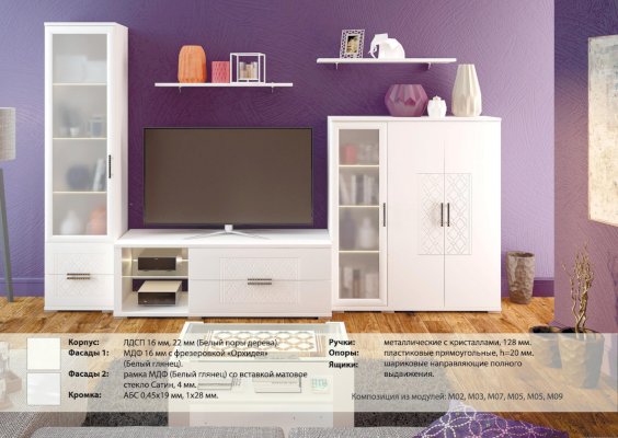 6. К модулям 02,03,04,07 можно заказать светодиодную подсветку для стеклянных полок.