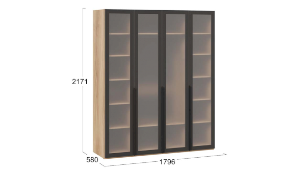 Шкаф для одежды 580 со стеклянными дверями Порто СМ-393.07.114 (ТриЯ)