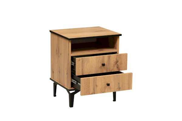 Прикроватная тумбочка содержит три отделения – открытую полку и два выдвижных ящика. Столешница имеет оптимальную высоту – такую, чтобы можно удобно и легко дотянуться и положить вещь, лежа в кровати. На тумбу можно поставить лампу, в открытую полку положить книгу, телефон, планшет – они будут одновременно и под рукой, но в то же время не будут вам мешать. В выдвижных ящиках хорошо хранить документы. Такие тумбочки обычно приобретают в паре – для нее и для него – и ставят по обе стороны двуспальной кровати. Если тумбочка женская, в выдвижные ящики размещают духи, косметику, дамские мелочи, если мужская – бумаги, ежедневники, гаджеты.