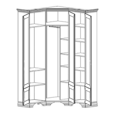 Высокий и компактный угловой шкаф Кентаки – мебель, позволяющая организовать комфортную систему хранения гардероба даже в самом небольшом пространстве. Она незаменима в прихожих, небольших гостиных или спальнях. Выполненная в классическом стиле, мебель универсальна – она будет гармонично смотреться в любом интерьере, дополняя его собой.