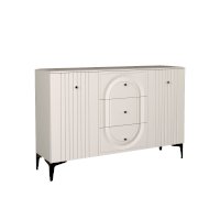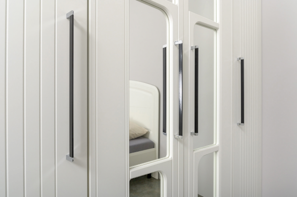 Вся лицевая фурнитура металлическая, графичное и стильное сочетание черного и хромированных деталей эффектно расставляет акценты на мебели.