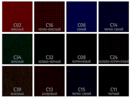 Цвет БЕЖЕВЫЙ / БЕЛЫЙ / ГОЛУБОЙ / ЗЕЛЕНЫЙ / КОРИЧНЕВЫЙ / КРАСНЫЙ / ОРАНЖЕВЫЙ / САЛАТОВЫЙ / СЕРЫЙ / СИНИЙ / СИРЕНЕВЫЙ / ЧЕРНЫЙ