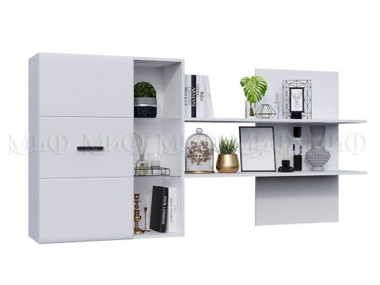 Изысканная, белоснежная с приятным блеском гостиная, несомненно украсит собой любую квартиру или дом. В гостиной есть все необходимые элементы для красивого оформления комнаты. Фасады с фрезеровкой и стеклянные витрины создают современный и стильный образ вашему дому.