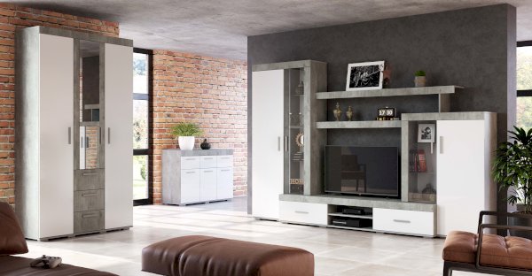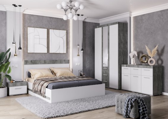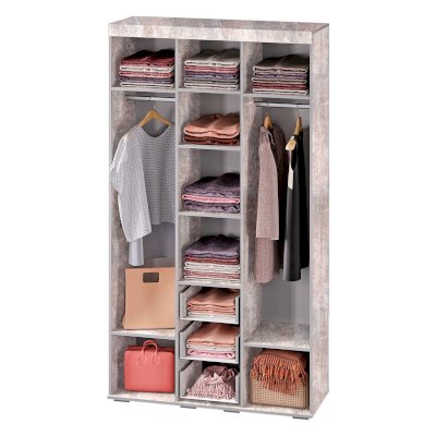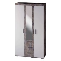 Стильный шкаф из коллекции мебели Инстайл поможет вам бережно хранить вещи и станет украшением вашего интерьера. Модель выполнена в комбинации белого и цвета бетон. Внутреннее наполнение состоит из отделения со штангой, полок для вещей и трех выдвижных ящиках на роликовых направляющих. Геометрические ручки под металл – очень удобны в использовании.