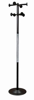 Эта элегантная напольная вешалка выполнена из оцинкованной стали с полимерным покрытием со вставкой из зеркальной нержавеющей стали. Данная модель вешалки идеально вписывается в интерьер современного кабинета.