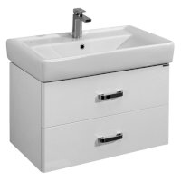 Современная лаконичная модель тумбы AQUATON Америна 80 Н шириной 80 см с двумя внешними ящиками и одним встроенным выполнена в белоснежном глянцевом цвете.
