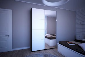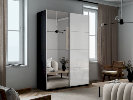 Шкаф-купе 2-х дверный Прайм Зеркало/Белое стекло (Е1)