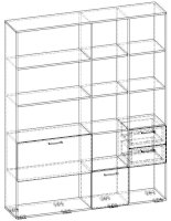 Применение задней стенки из ЛДСП (в ячейках с ящиками и фасадами) позволяет использовать данный стеллаж для зонирования пространства (чтобы предотвратить опрокидывание, необходимо обеспечить крепление стеллажа к стене).