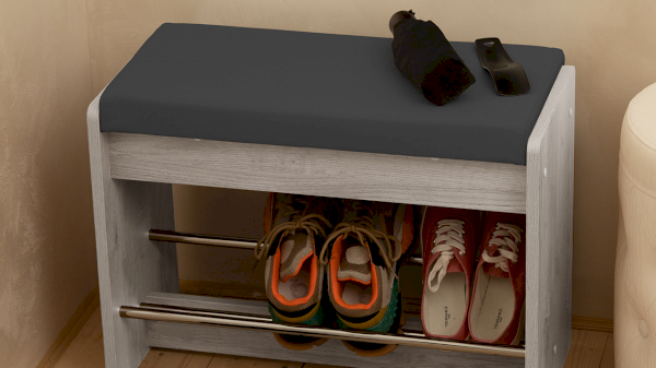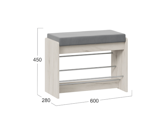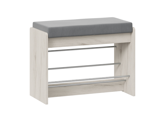 Тумба для обуви «Тайм» - это прекрасный выбор небольшого и функционального предмета мебели, который оснащен открытыми полками, что позволит быстро найти нужную пару обуви, а мягкое сиденье сделает процесс переобувания комфортным.