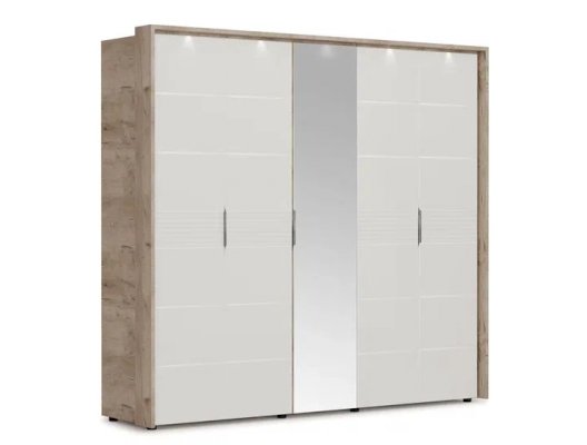 Современный распашной шкаф Джулия яркий представитель европейского минимализма. Это шкаф-конструктор, который позволяет выбрать подходящий вам размер, его наполнение и дизайн. На базе корпуса можно создать множество комбинаций: с зеркалами, с глухими глянцевыми фасадами, с порталом из ЛДСП 22мм или без него. Дополнительная опция – светодиодная подсветка монтируется в верхней части портала над каждой дверью. Шкаф выполнен из экологически безопасных надежных материалов. Декором белым глянцевым фасадам High Gloss служит фрезерованный рисунок «Волна» - подчеркивает зеркальный блеск, делает интерьер спальни особенным и неповторимым. Торцевые ручки из хромированного металла - яркий акцент фасадов. Наполнение шкафа включает в себя вместительные полки и отделения со штангой, что позволяет создать систему для хранения вещей различного назначения. Идеально компонуются со всеми модулями системы Джулия.